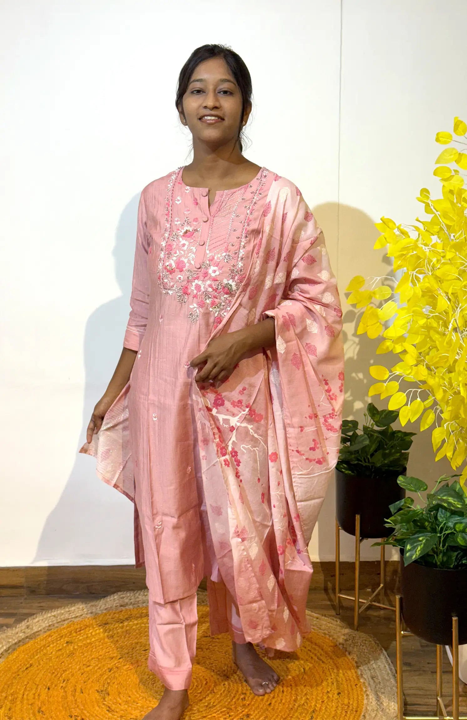 Bring home the charm of comfort and grace with our "Pink Rush 496" ensemble — a stunning 3-piece cotton set that blends subtle style with everyday elegance. The straight-cut top paired with straight pants ensures a flattering fit, while the vibrant printed dupatta adds a refreshing touch of color and liveliness.