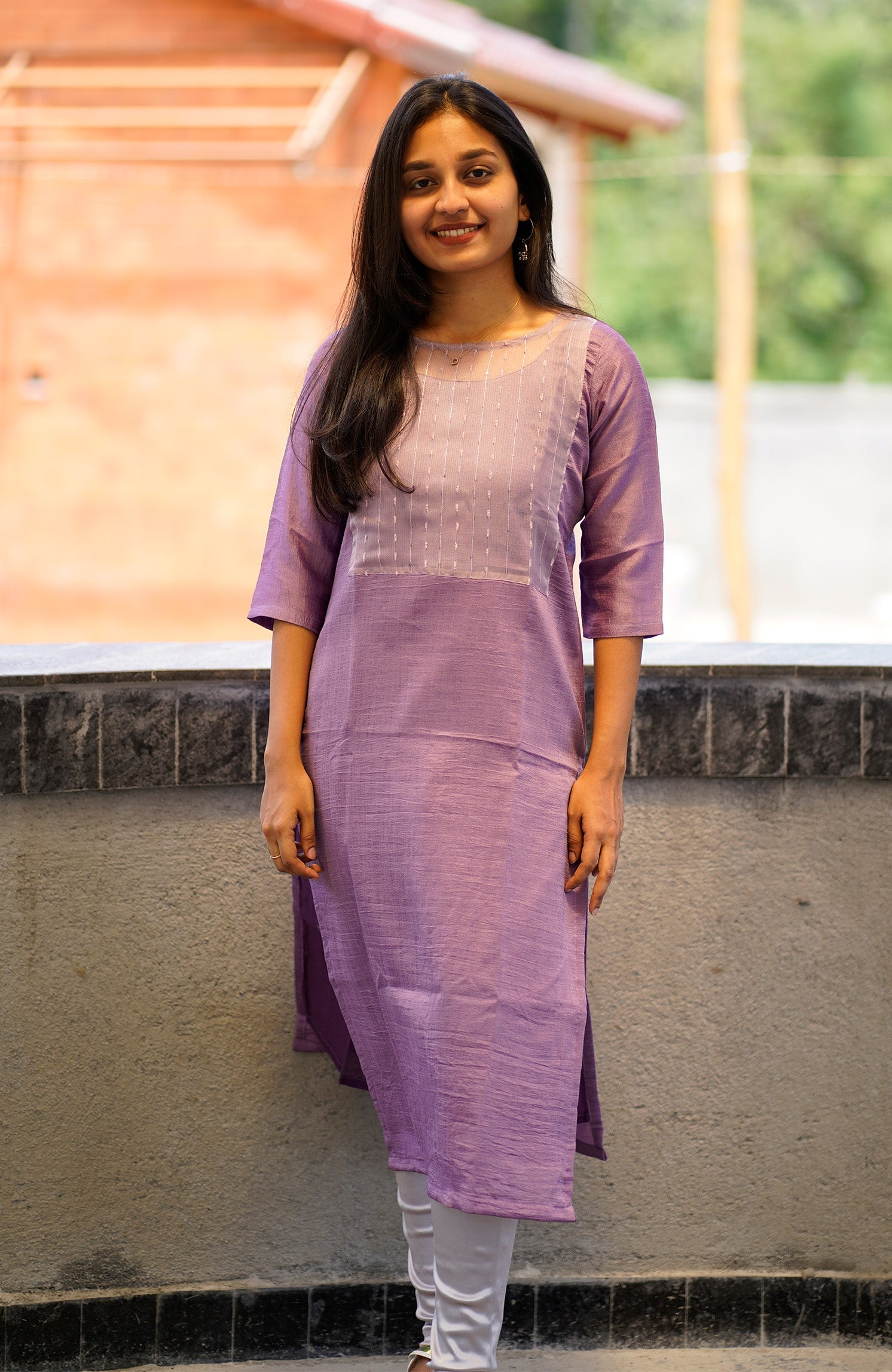 For your comfort, a soft cotton lining is included, ensuring a pleasant wearing experience. The top features a timeless straight-cut silhouette, making it suitable for all body types, and the 3/4th sleeves add a touch of elegance to the overall design.