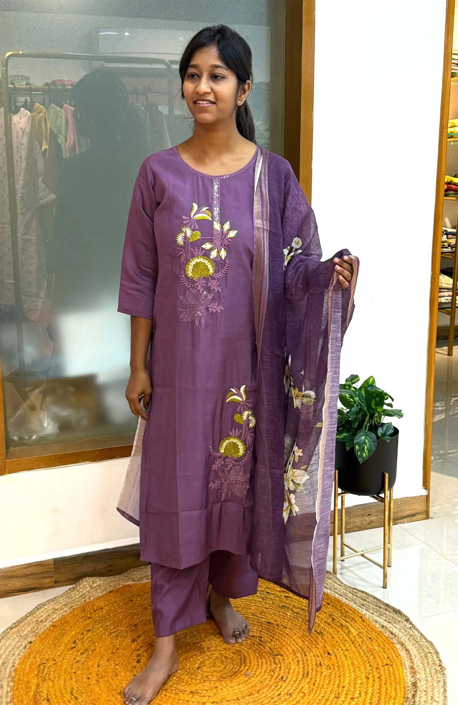 With its soft cotton feel, relaxed palazzo silhouette, and Ajrakh patch detailing, Pure Brown 533 brings together comfort and style for the perfect everyday casual outfit.